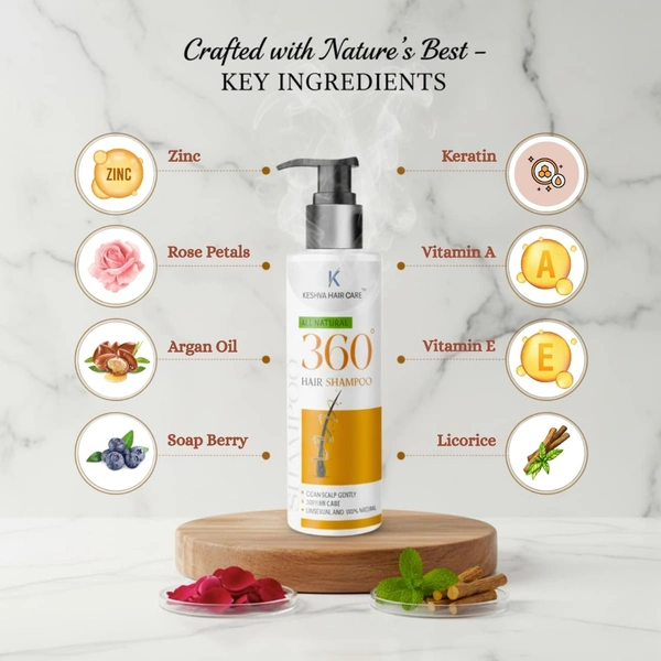 Keshva 360 Hair Shampoo is an Ayurvedic-inspired, unisex shampoo designed to gently cleanse, nourish, and restore scalp health while promoting thicker, stronger, and naturally healthy hair.
