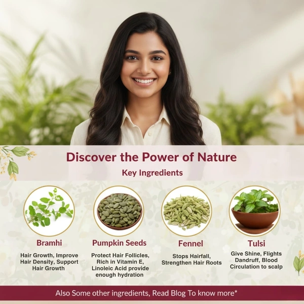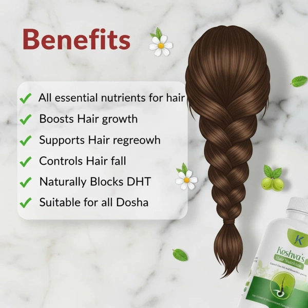 Key Benefits: Supports hair regrowth, controls hair fall, naturally blocks DHT, and is suitable for all doshas.