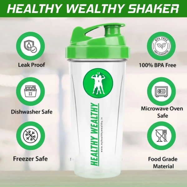 Apni daily nutrition aur weight loss routine ko easy banayein Healthy Wealthy Shaker ke saath. Ye shaker leak-proof, 100% BPA free aur food-grade material se bana hai, jo health ke liye safe hai. Dishwasher, freezer aur microwave safe design ke saath, ye shaker daily use ke liye perfect hai.