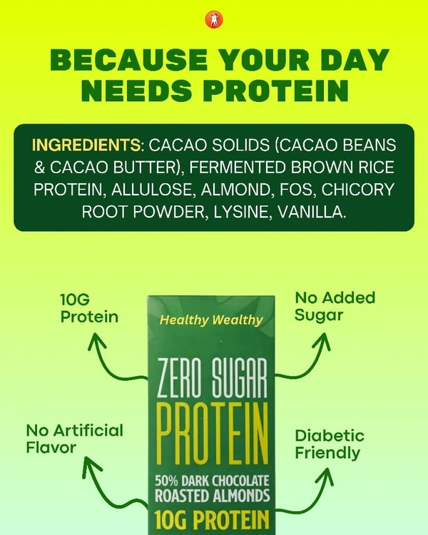 Zero Sugar Protein Dark Chocolate (50% Dark Chocolate with Roasted Almonds | 10g Protein) - Pack of 4